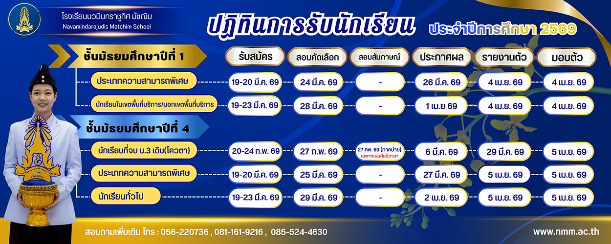 ประกาศโรงเรียนนวมินทราชูทิศ มัชฌิม เรื่อง การรับสมัครนักเรียน ประจำปีการศึกษา 2569